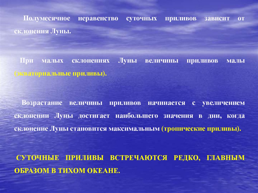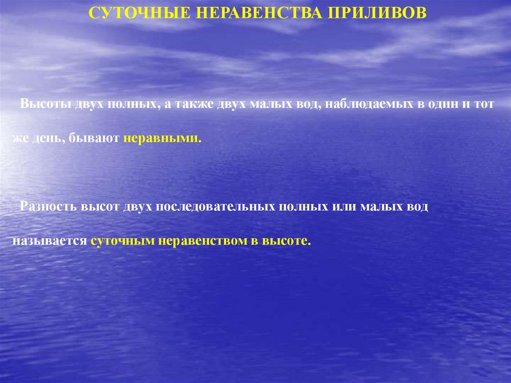 СУТОЧНЫЕ ПРИЛИВЫДля суточных приливов характерно то, что в течение суток наступает
