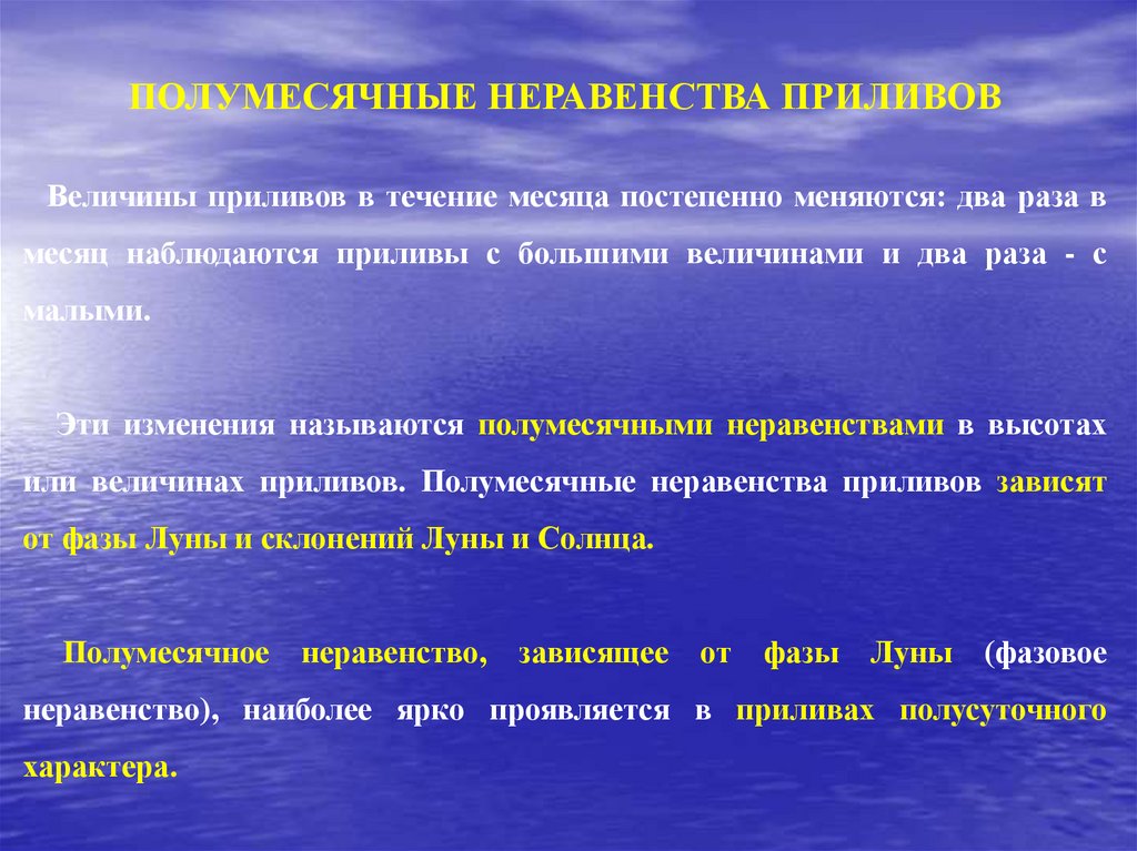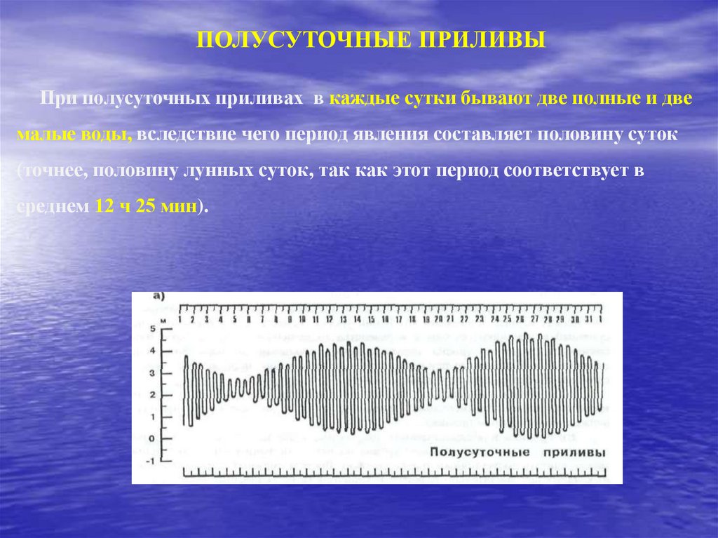 Влияние мелководья проявляется чаще всего в полусуточных приливах