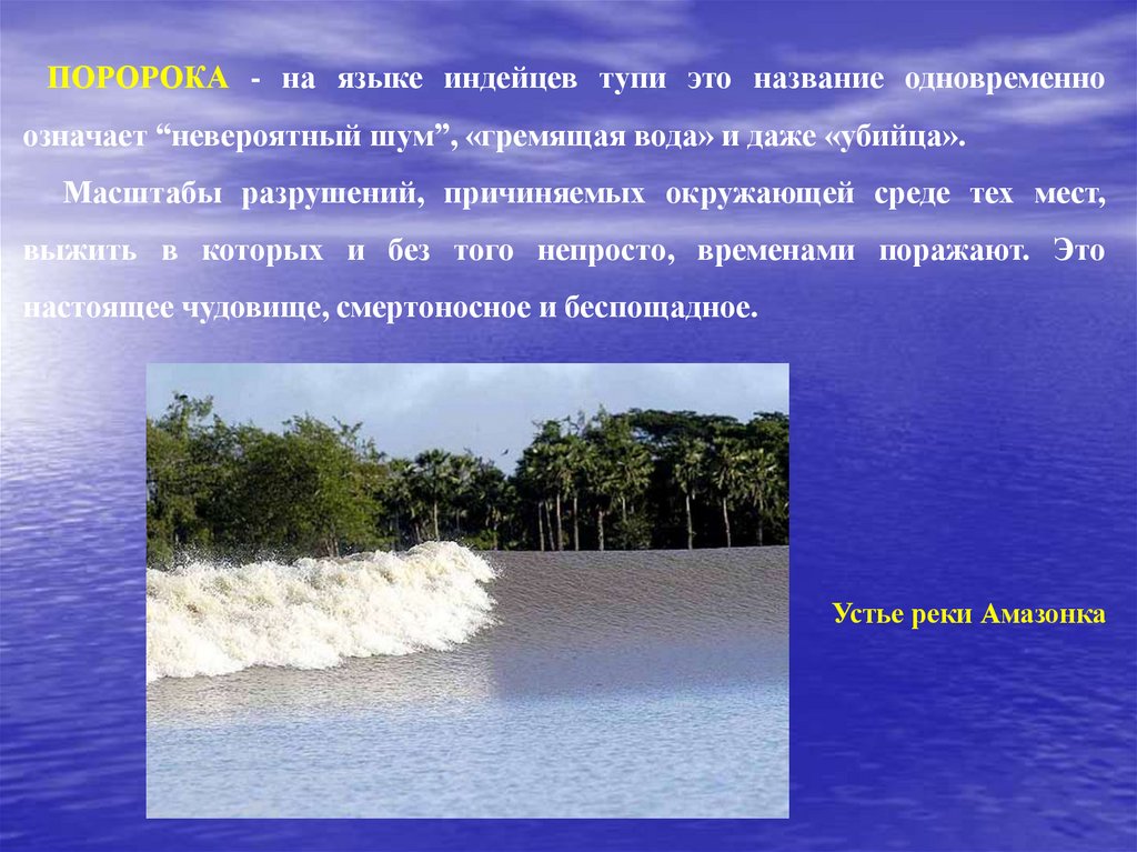 ПОРОРОКА - на языке индейцев тупи это название одновременноозначает “невероятный шум”, «гремящая вода» и даже «убийца».