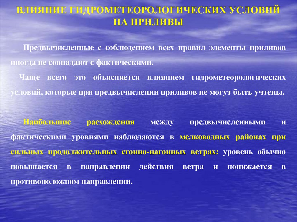 ВЛИЯНИЕ ГИДРОМЕТЕОРОЛОГИЧЕСКИХ УСЛОВИЙНА ПРИЛИВЫ