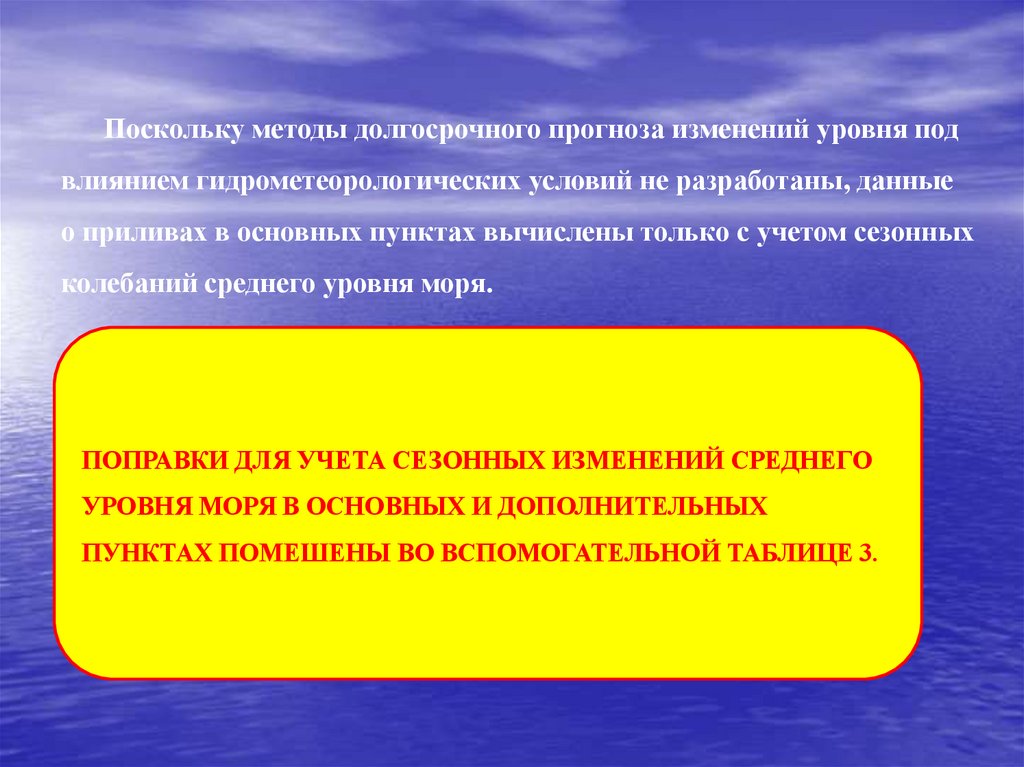 о приливах в основных пунктах вычислены только с учетом сезонных