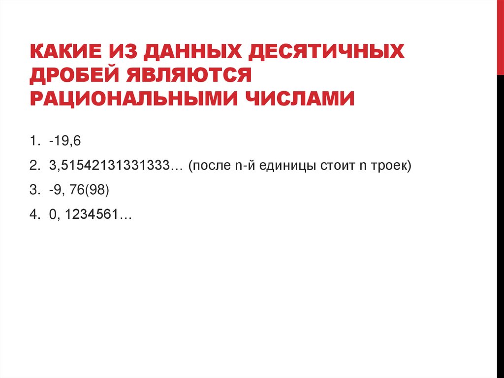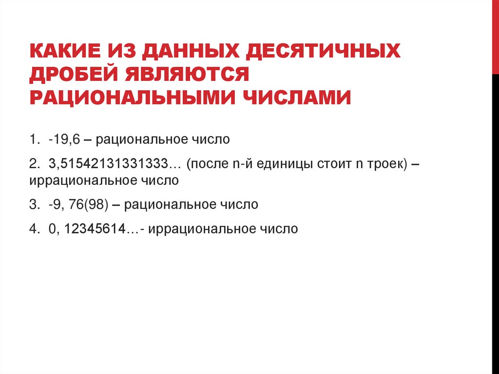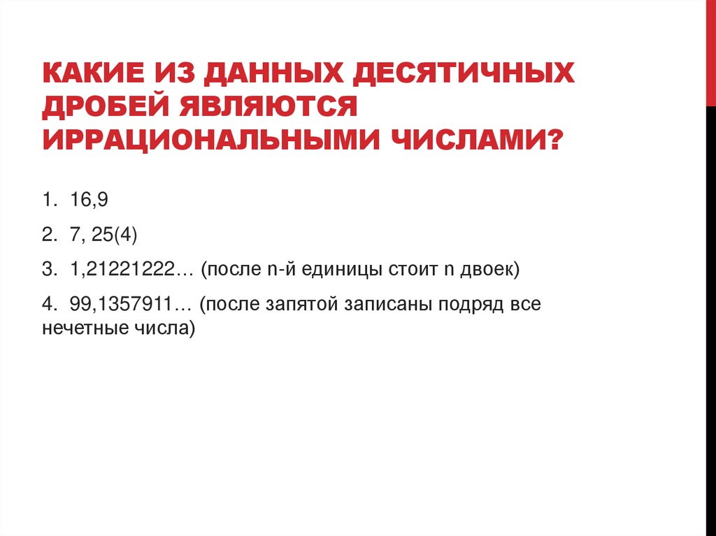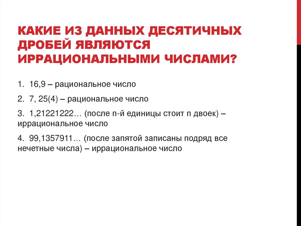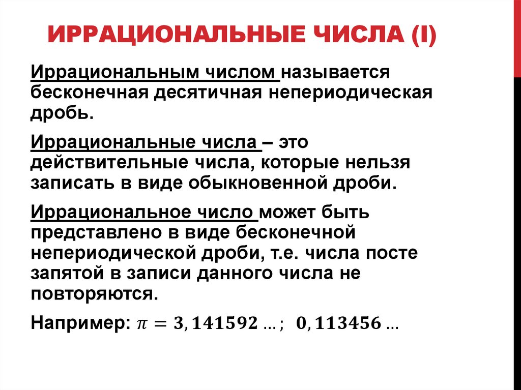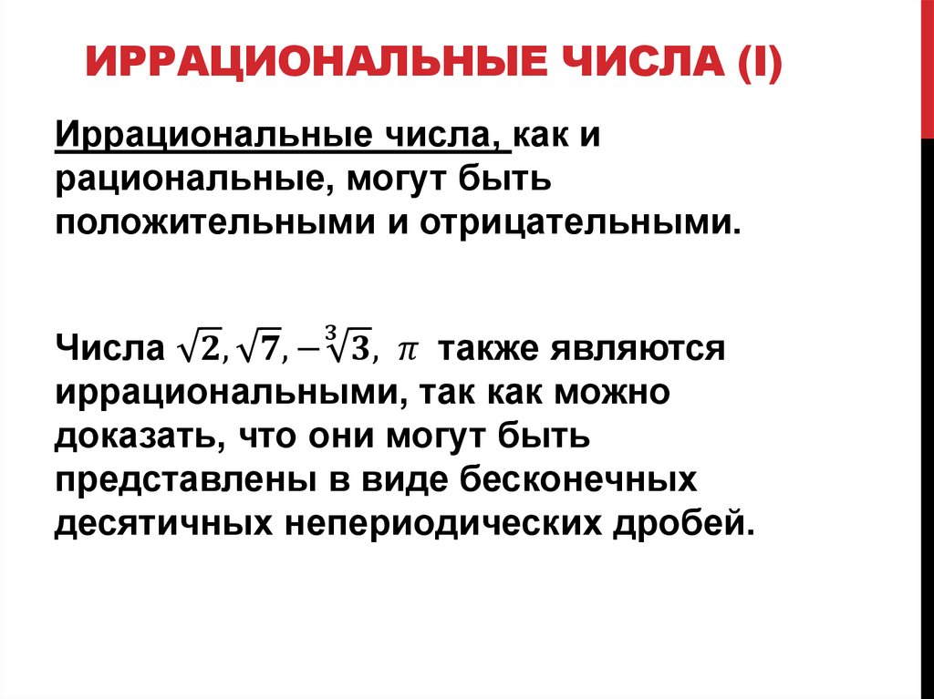 ИРРАЦИОНАЛЬНЫЕ ЧИСЛА (I)Иррациональным числом называется