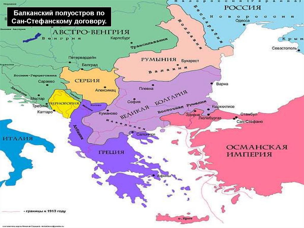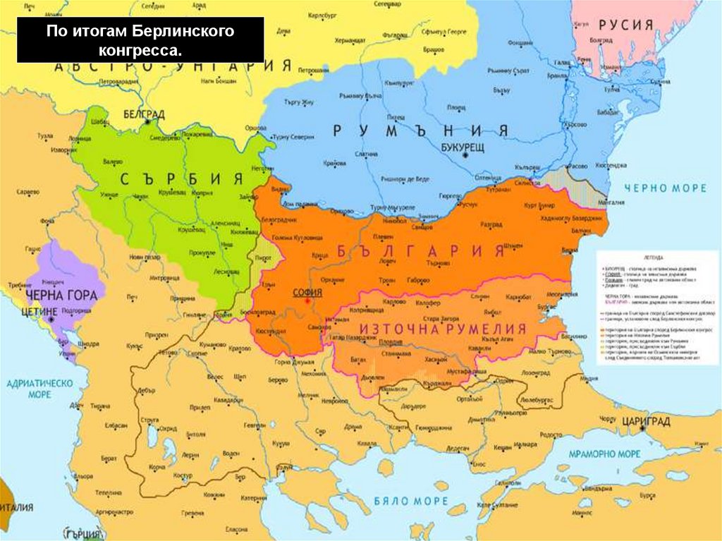 • Болгария была расчленена на две части. Автономной, имеющей свое