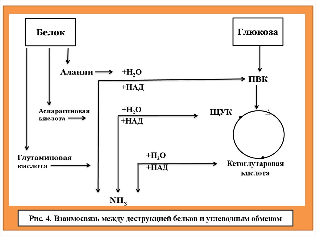 Рис. 4. Взаимосвязь между деструкцией белков и углеводным обменом