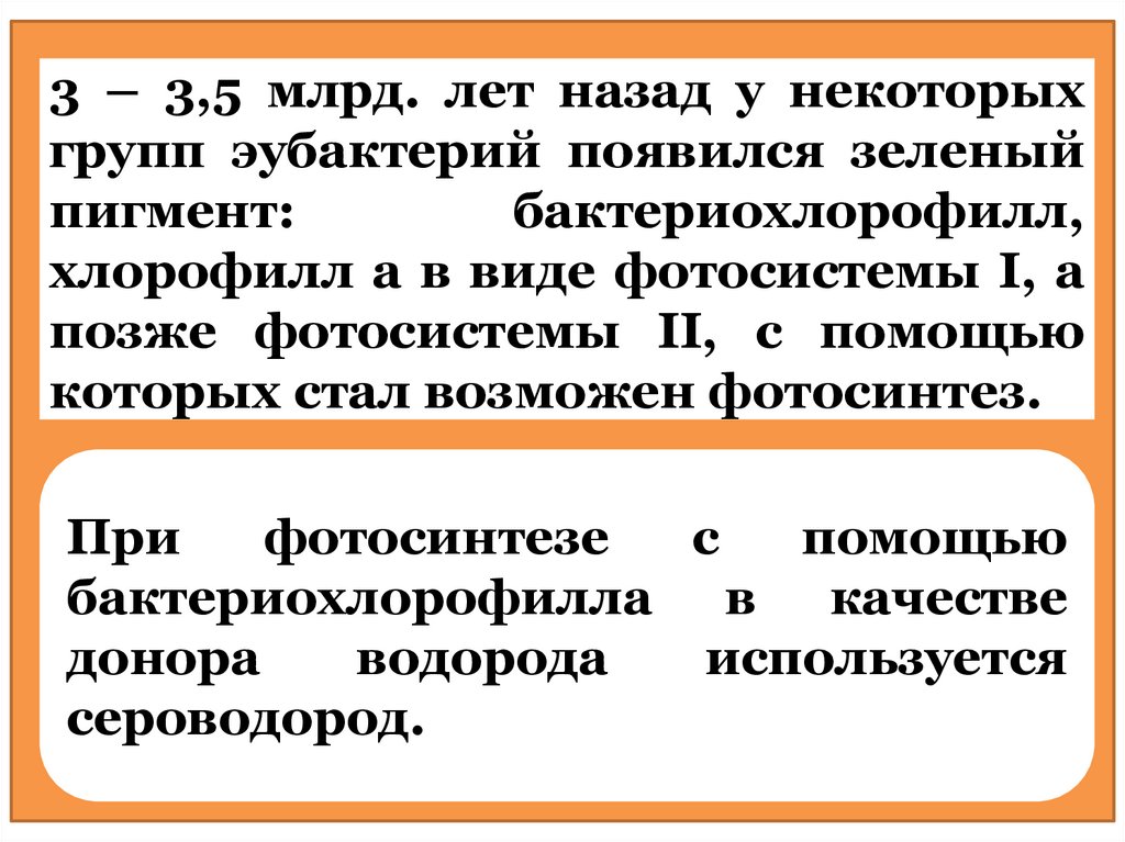 3 – 3,5 млрд. лет назад у некоторыхгрупп эубактерий появился зеленый
