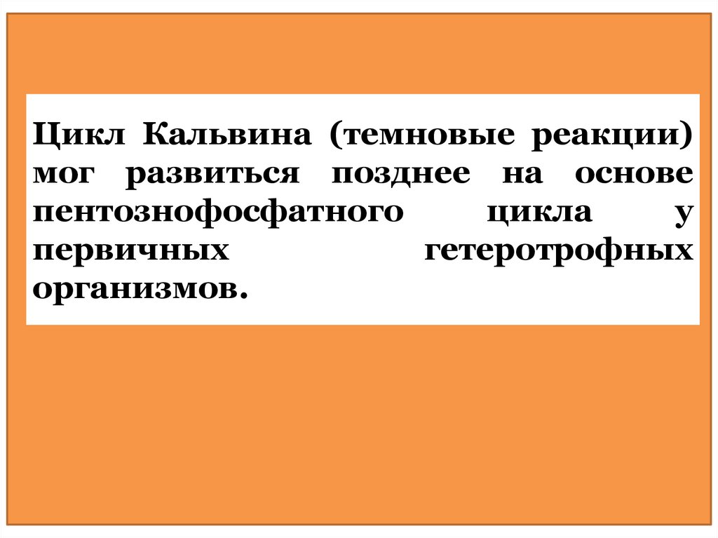 Цикл Кальвина (темновые реакции)мог развиться позднее на основе