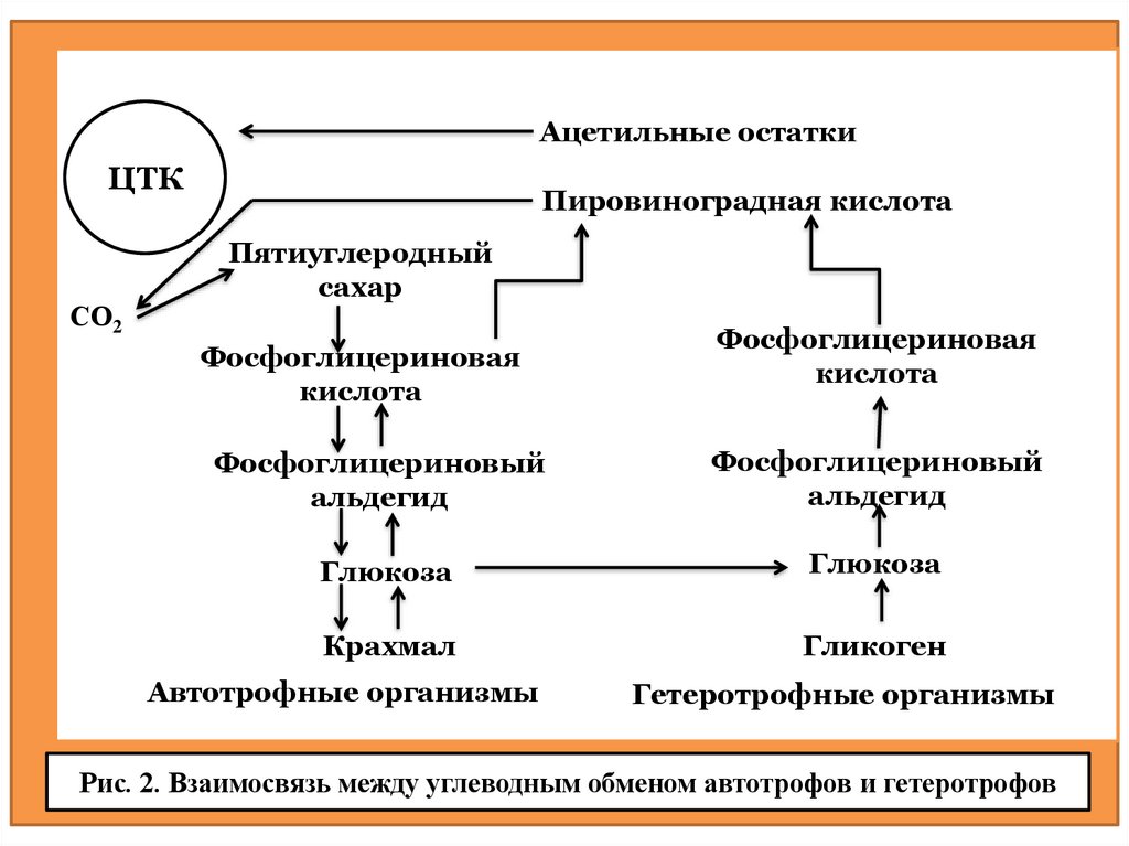 Рис. 2. Взаимосвязь между углеводным обменом автотрофов и гетеротрофов
