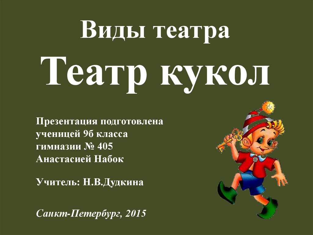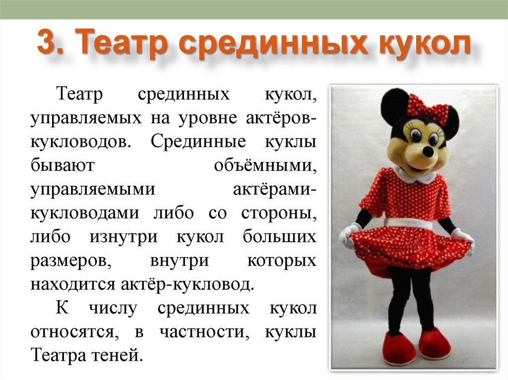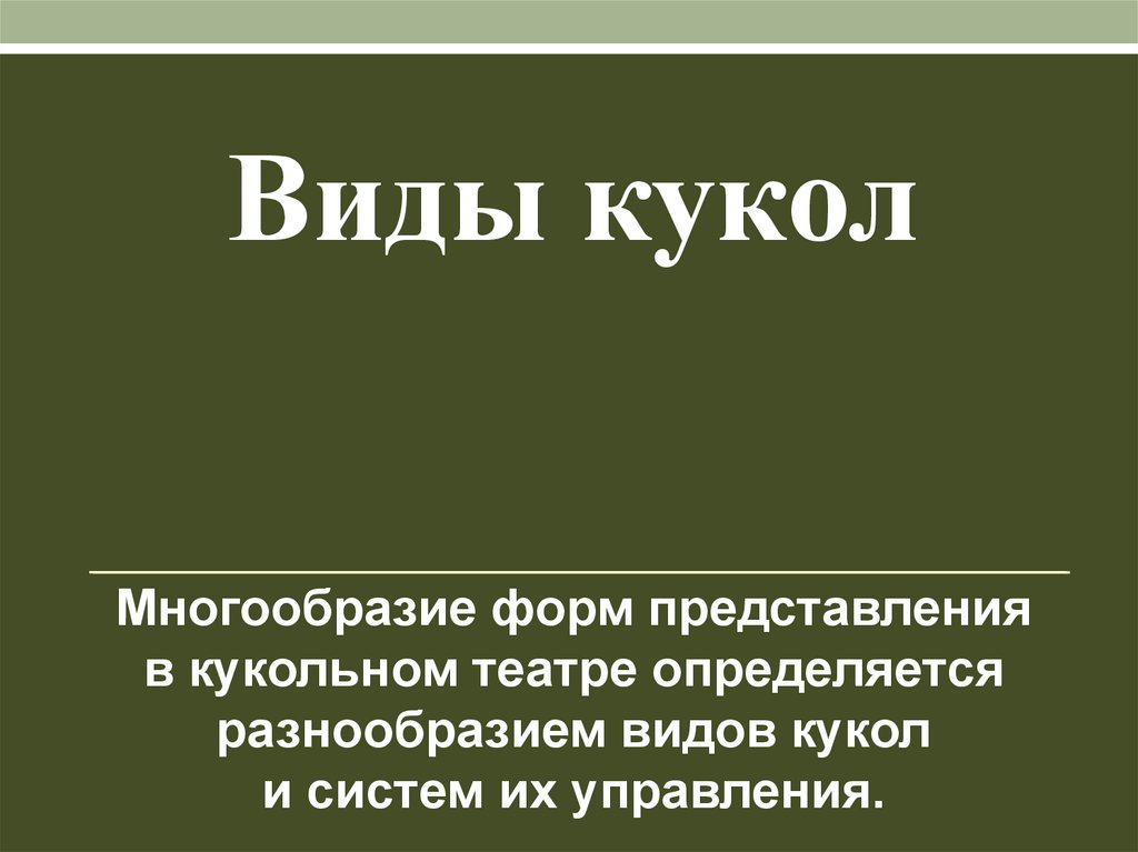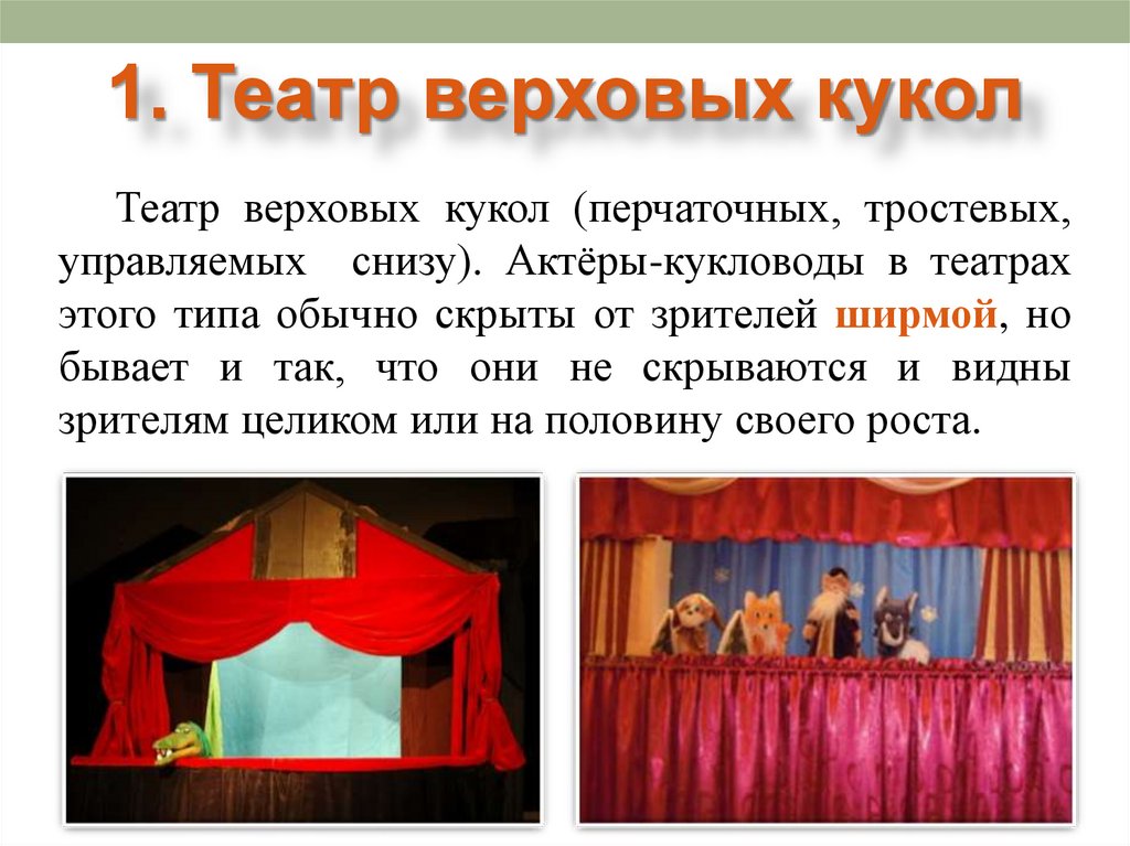 1. Театр верховых куколТеатр верховых кукол (перчаточных, тростевых,