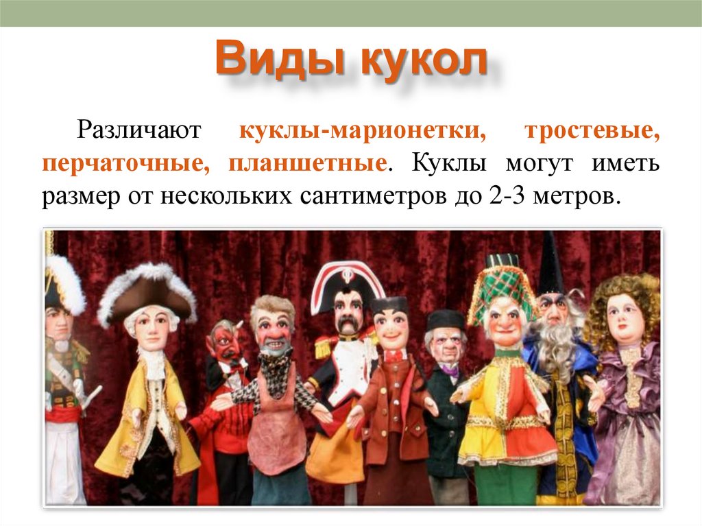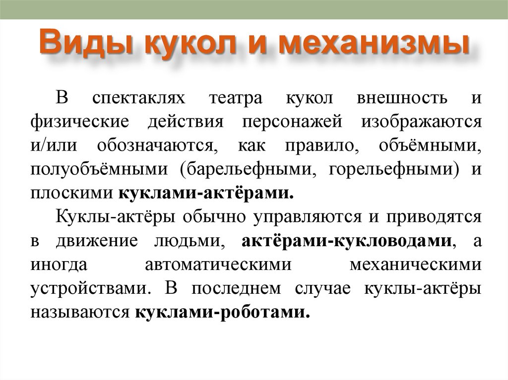 Виды кукол и механизмыВ спектаклях театра кукол внешность и