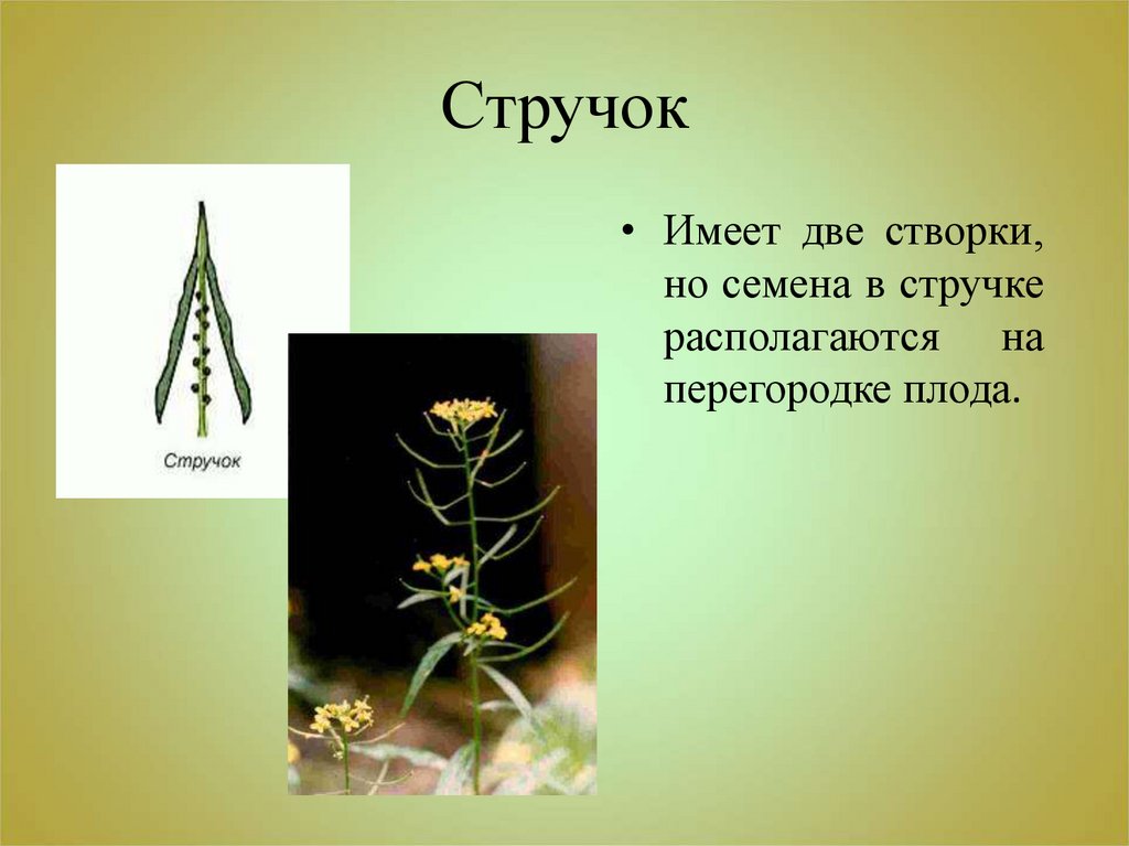 • Имеет две створки,но семена в стручке