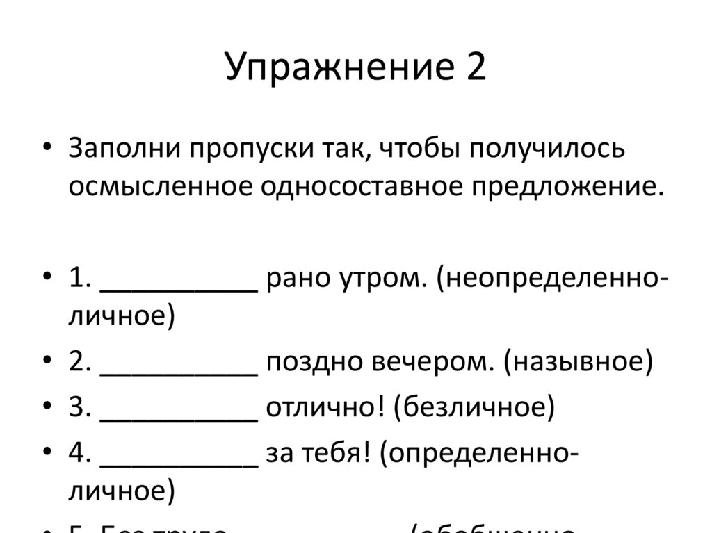 Упражнение 2• Заполни пропуски так, чтобы получилось