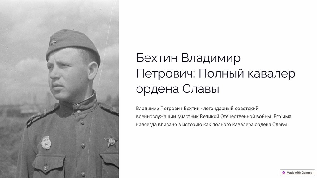 Бехтин Владимир Петрович: полный кавалер ордена Славы