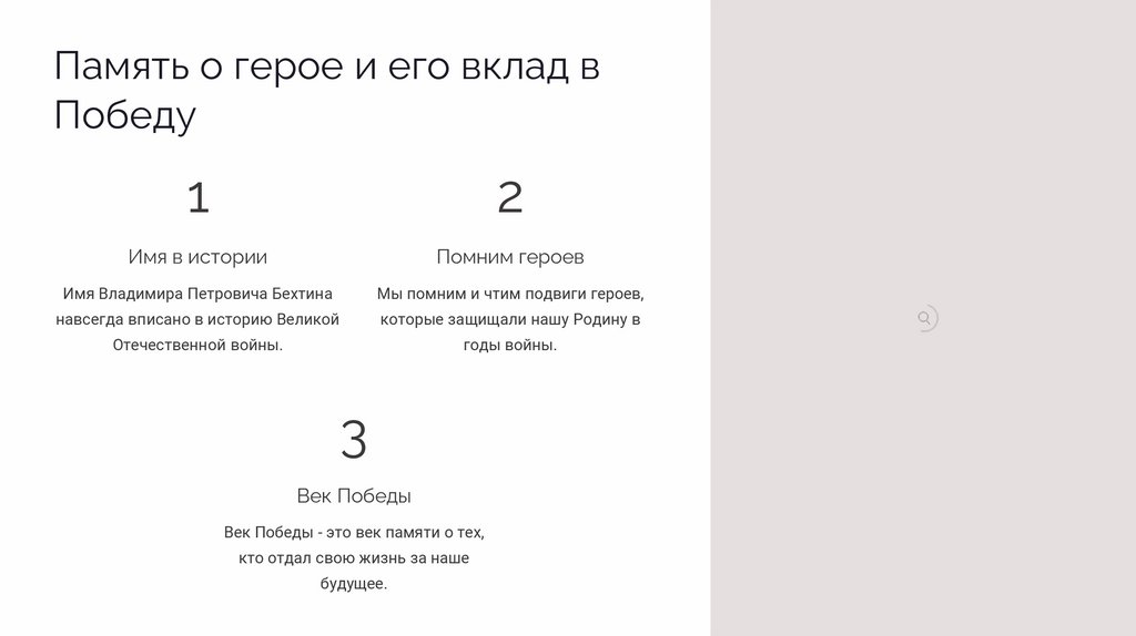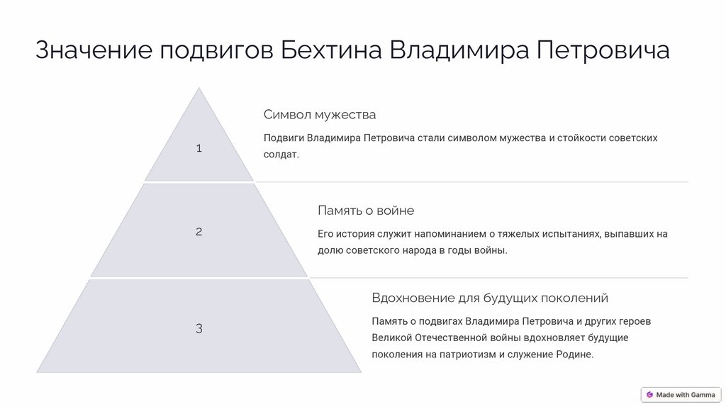 Значение подвигов Бехтина Владимира ПетровичаСимвол мужества