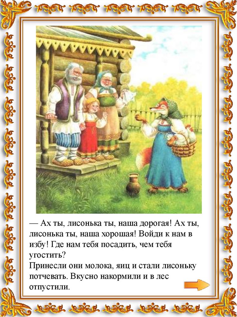 — Ах ты, лисонька ты, наша дорогая! Ах ты,лисонька ты, наша хорошая! Войди к нам в