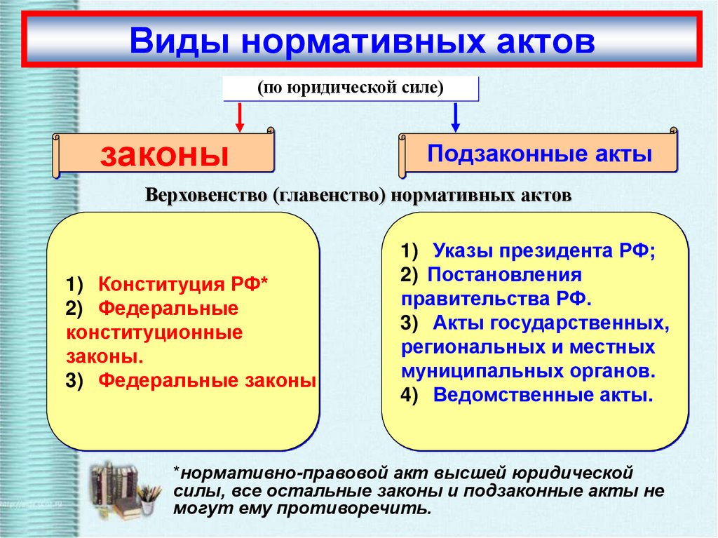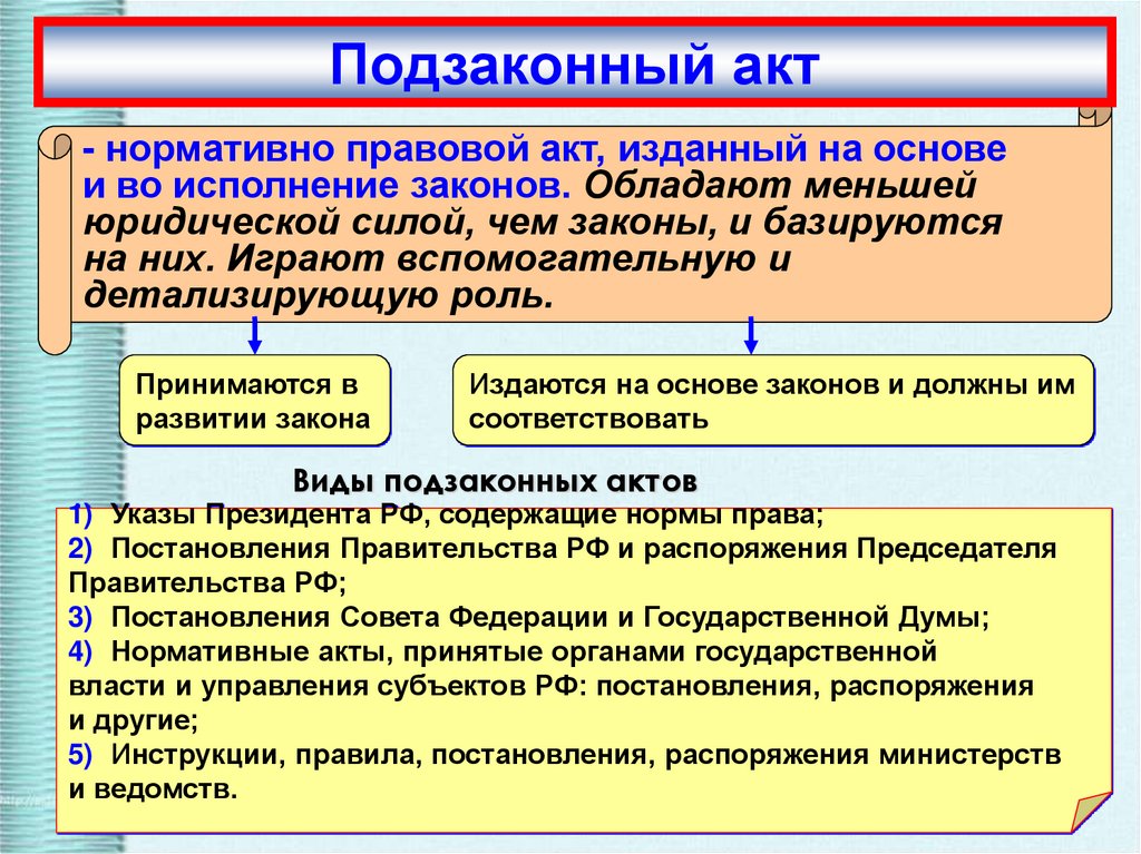 Подзаконный акт- нормативно правовой акт, изданный на основе
