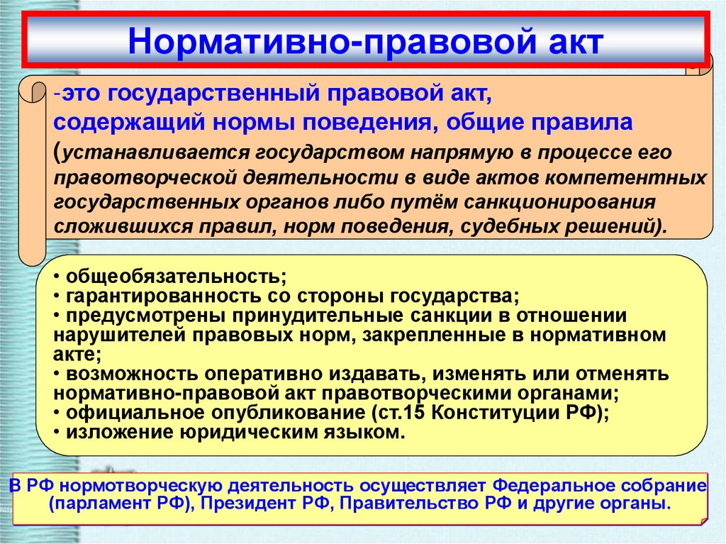 В РФ нормотворческую деятельность осуществляет Федеральное собрание