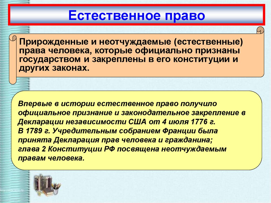Естественное правоПрирожденные и неотчуждаемые (естественные)