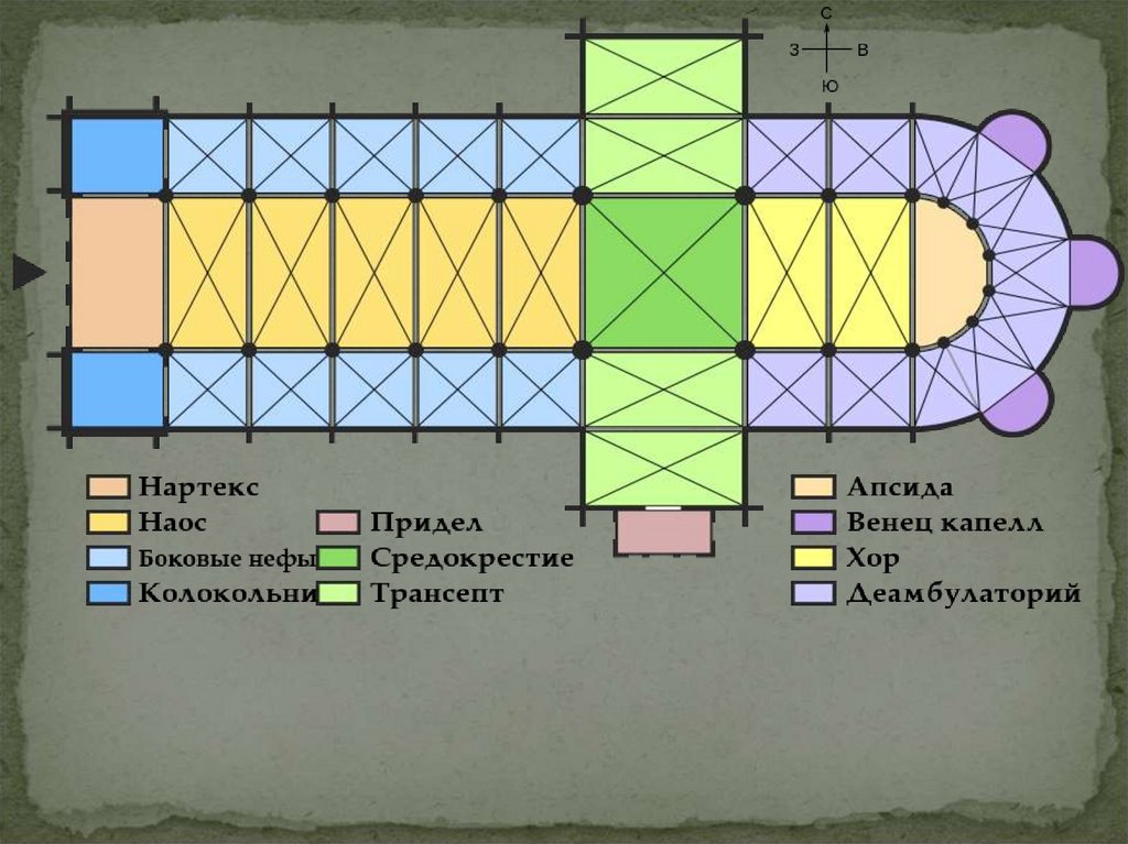 КОНТРФОРС – вертикальный каменныйвыступ стены, несущий нагрузку свода.
