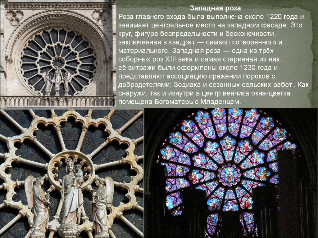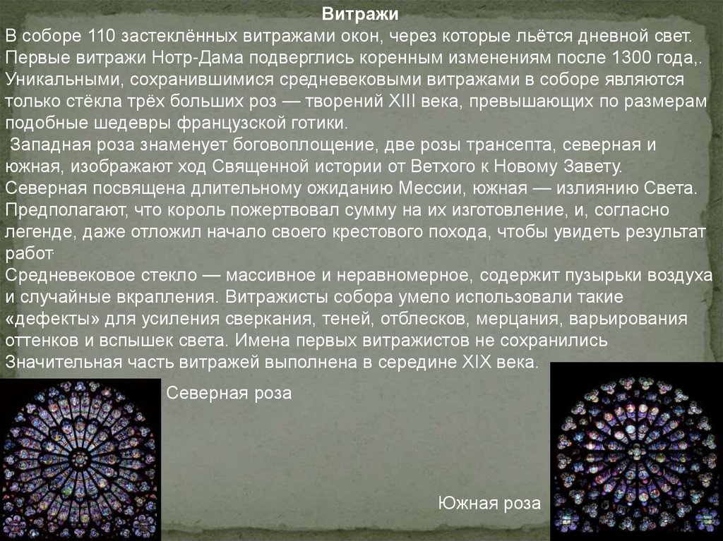 только стёкла трёх больших роз — творений XIII века, превышающих по размерам