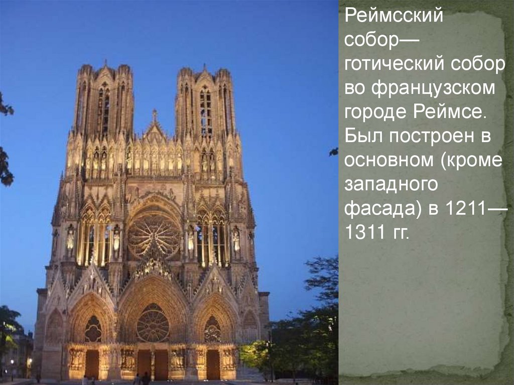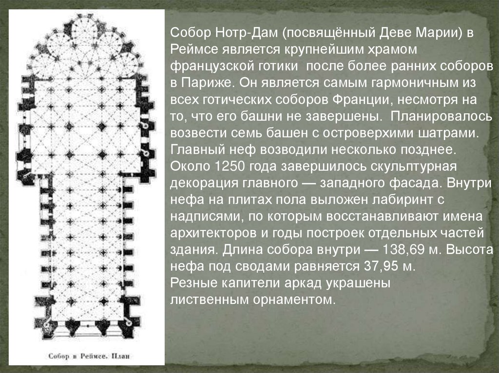 Собор Нотр-Дам (посвящённый Деве Марии) вРеймсе является крупнейшим храмом