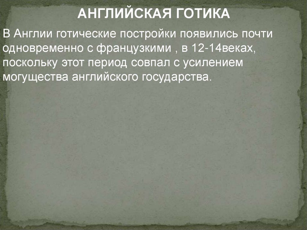АНГЛИЙСКАЯ ГОТИКАВ Англии готические постройки появились почти