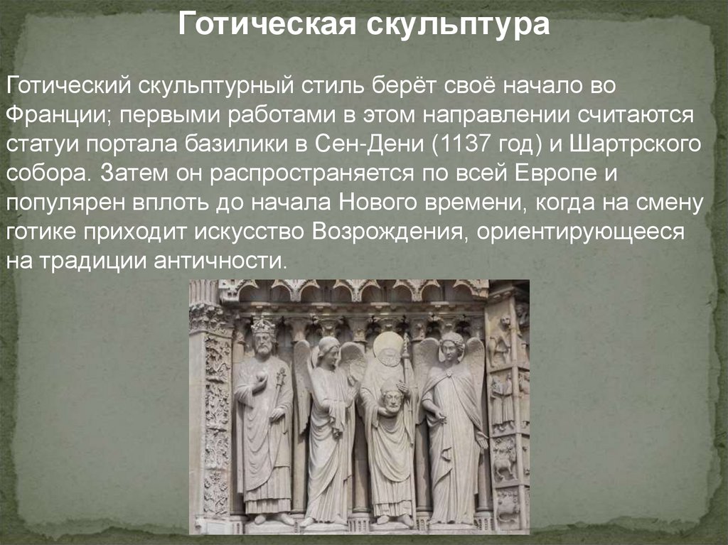 Готическая скульптураГотический скульптурный стиль берёт своё начало во
