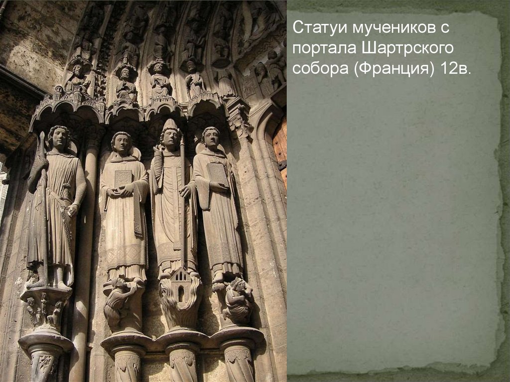Во Франции к моменту возникновения готического стиляскульптуры ваялись из каменных блоков, оставаясь в то же