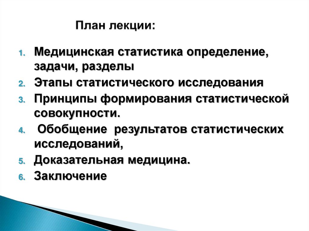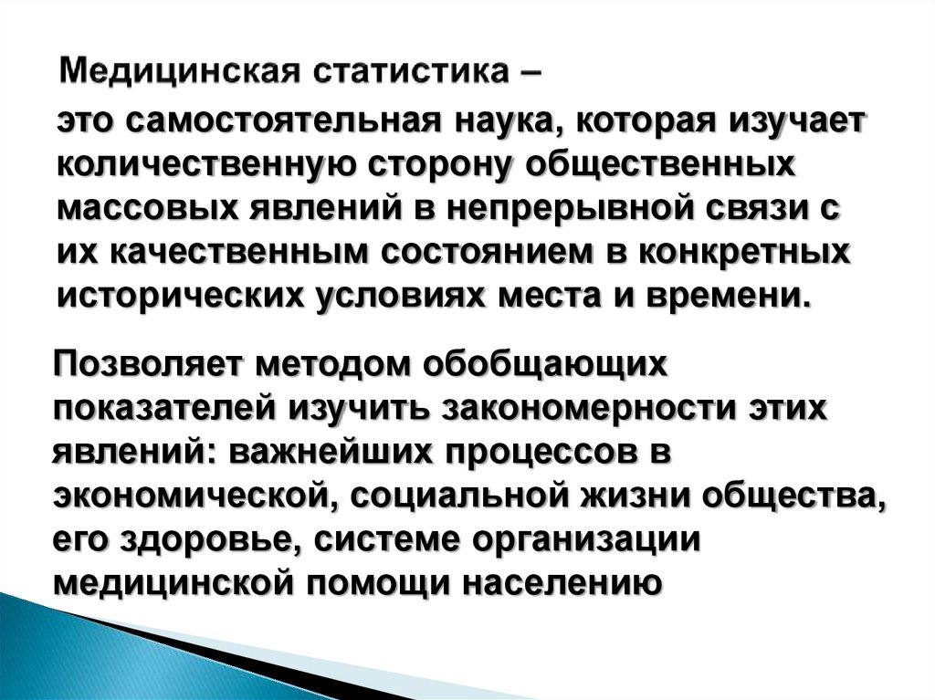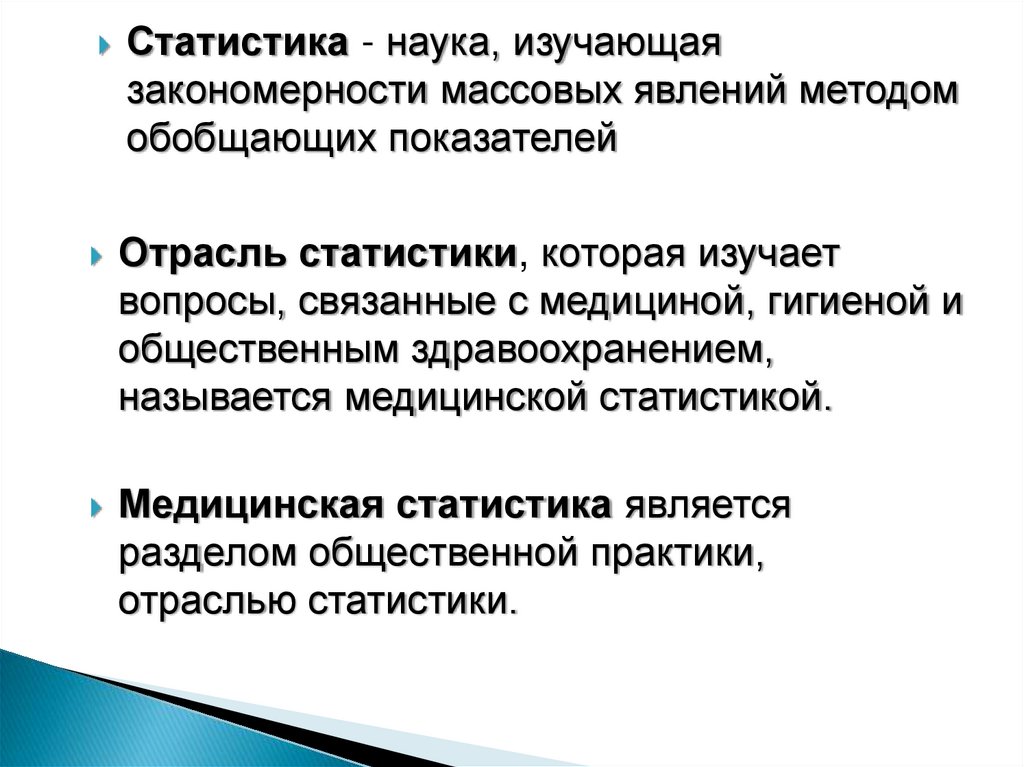 Разделы медицинской статистикиМЕДИЦИНСКАЯ СТАТИСТИКА