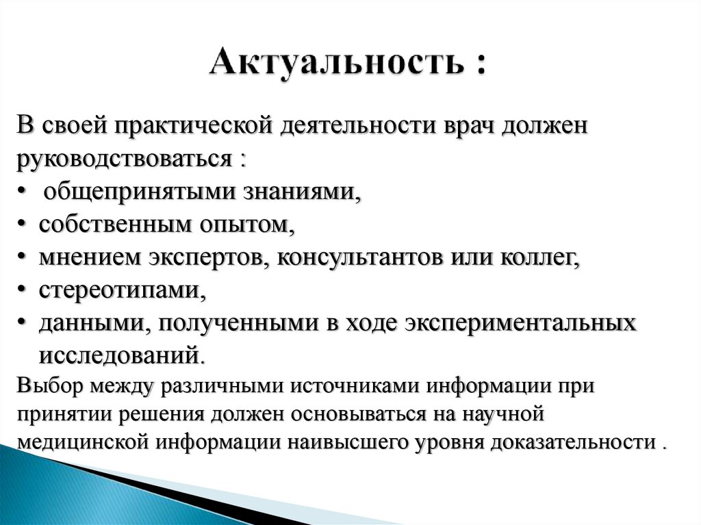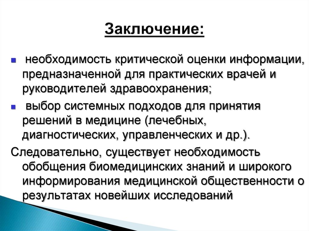 необходимость критической оценки информации,предназначенной для практических врачей и