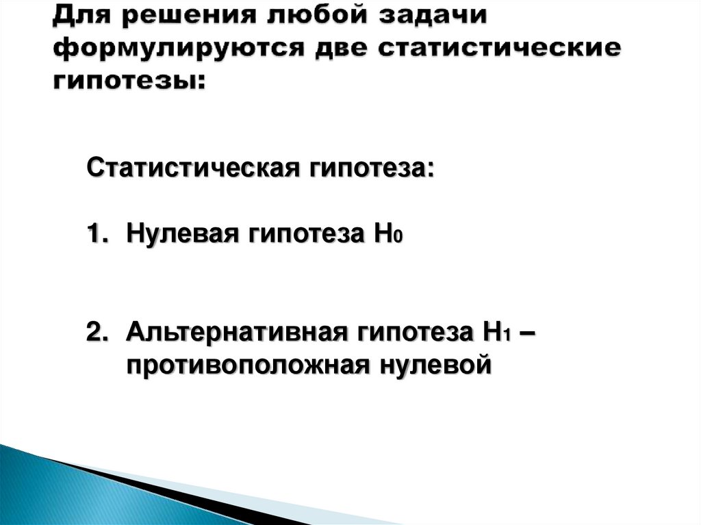 8. Для решения любой задачи формулируются две статистические гипотезы: