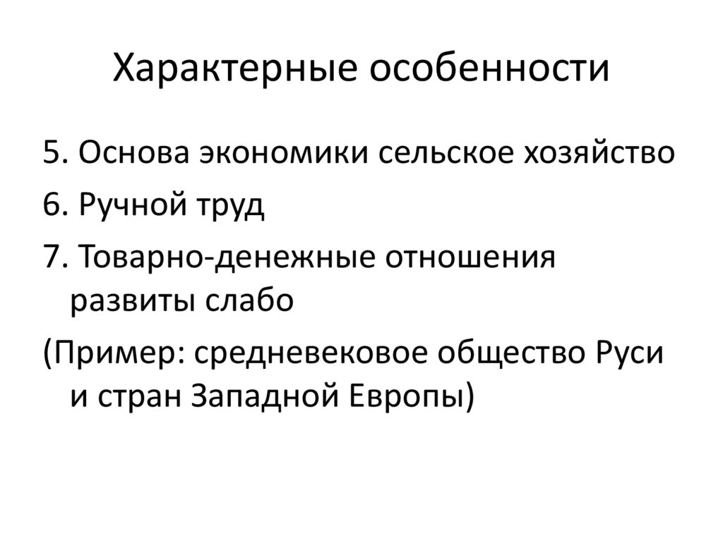 5. Основа экономики сельское хозяйство6. Ручной труд