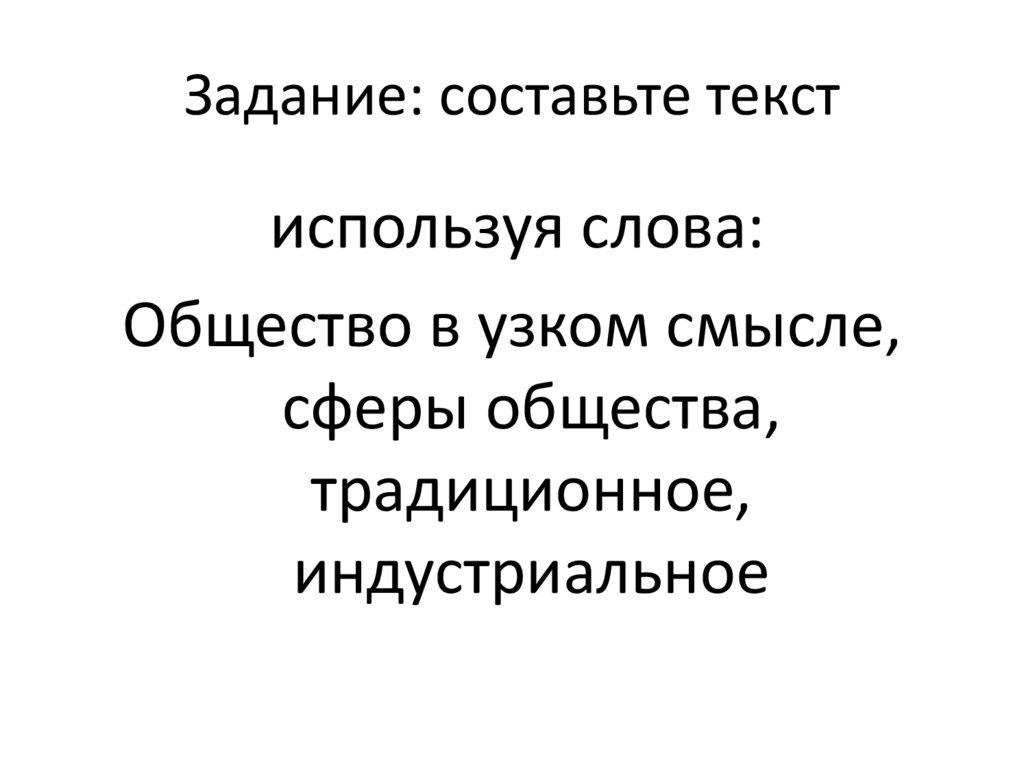 используя слова:Общество в узком смысле,