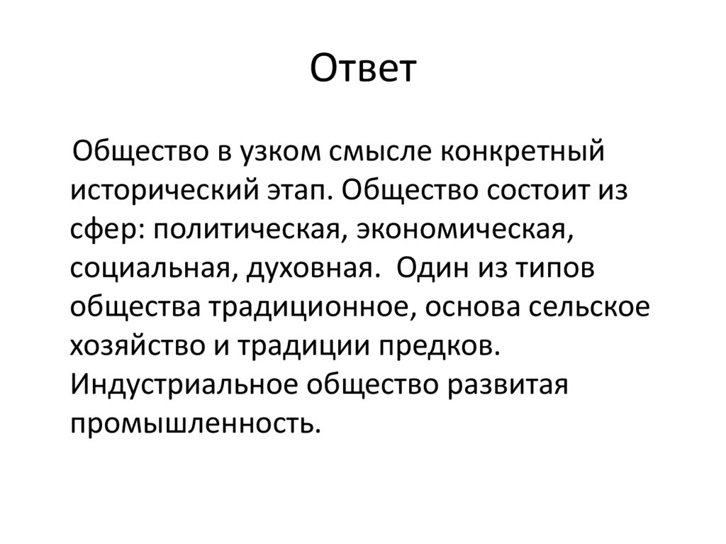 Общество в узком смысле конкретныйисторический этап. Общество состоит из