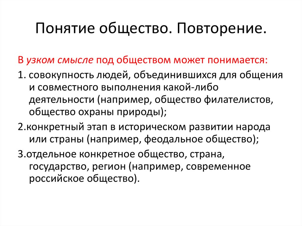 3. Понятие общество. Повторение.