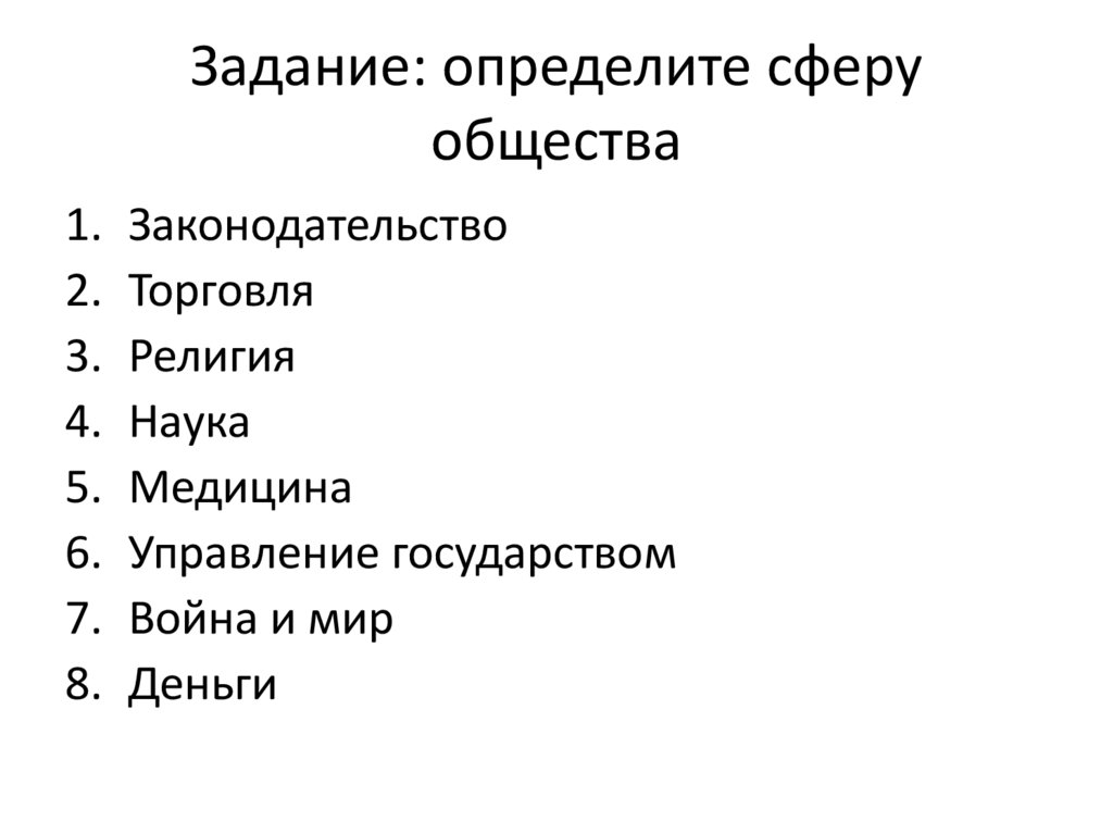 6. Задание: определите сферу общества