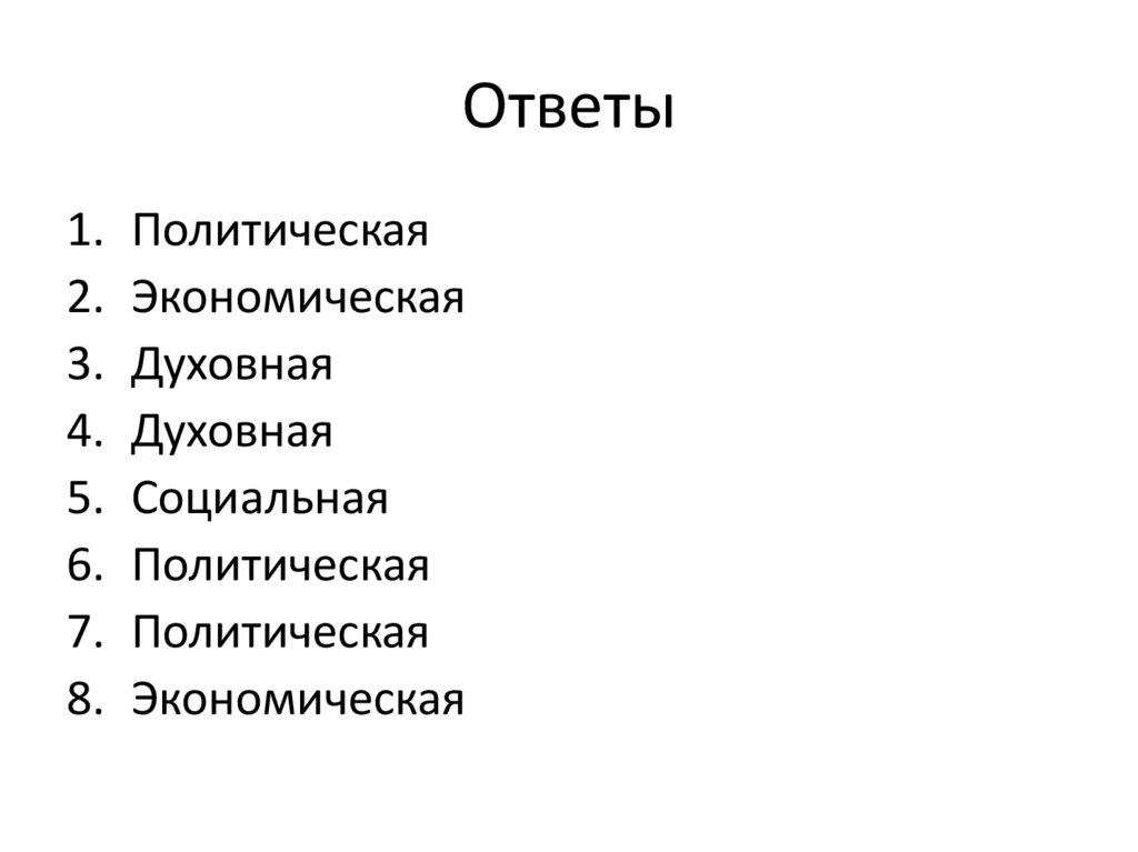 сфер: политическая, экономическая,