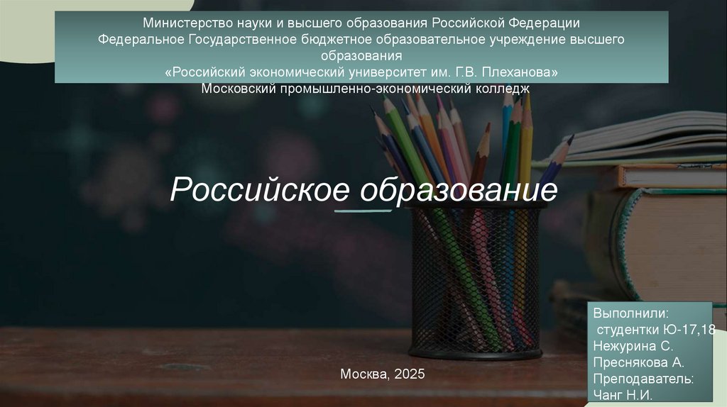 Министерство науки и высшего образования Российской ФедерацииФедеральное Государственное бюджетное образовательное учреждение высшего