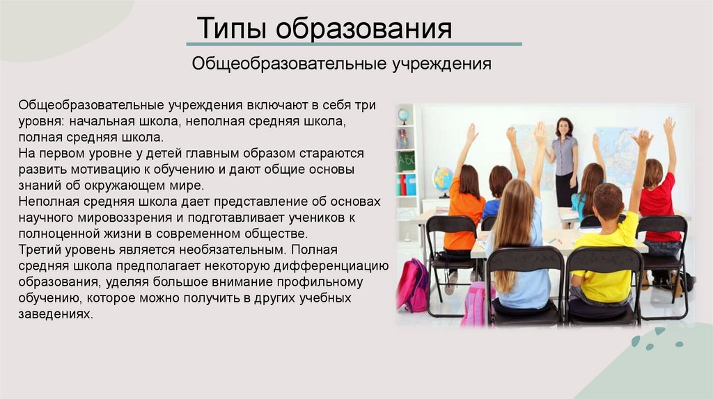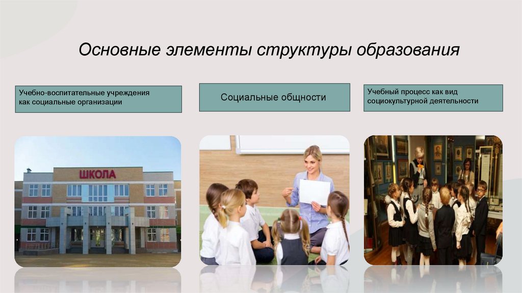 Основные элементы структуры образованияУчебно-воспитательные учреждения