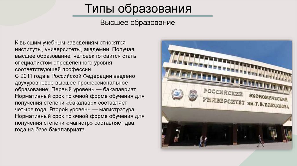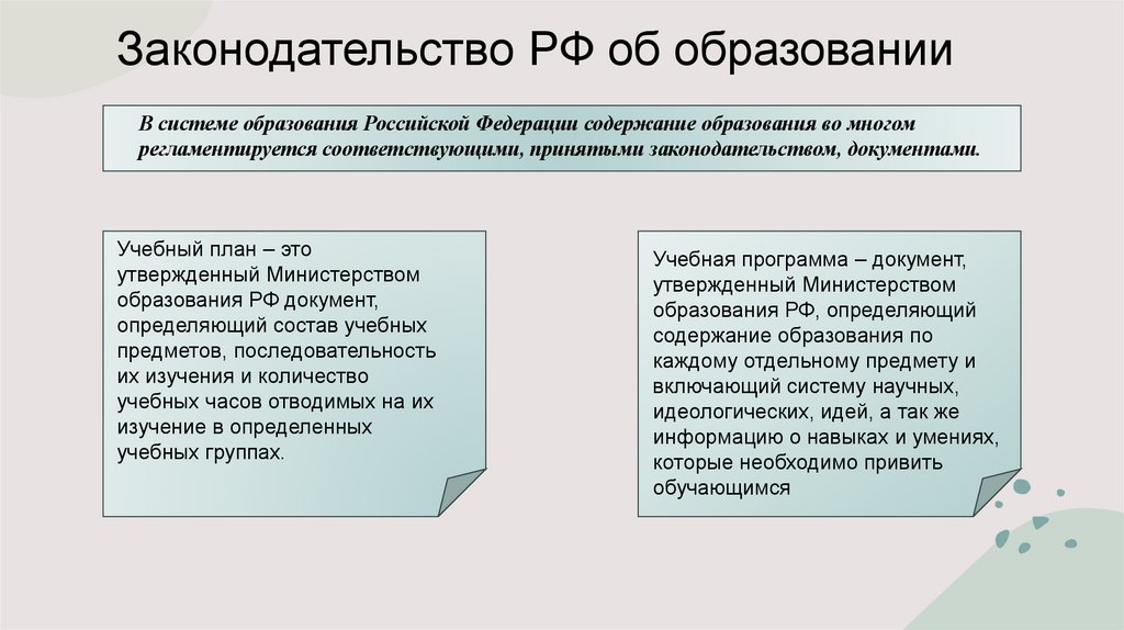 Законодательство РФ об образованииВ системе образования Российской Федерации содержание образования во многом