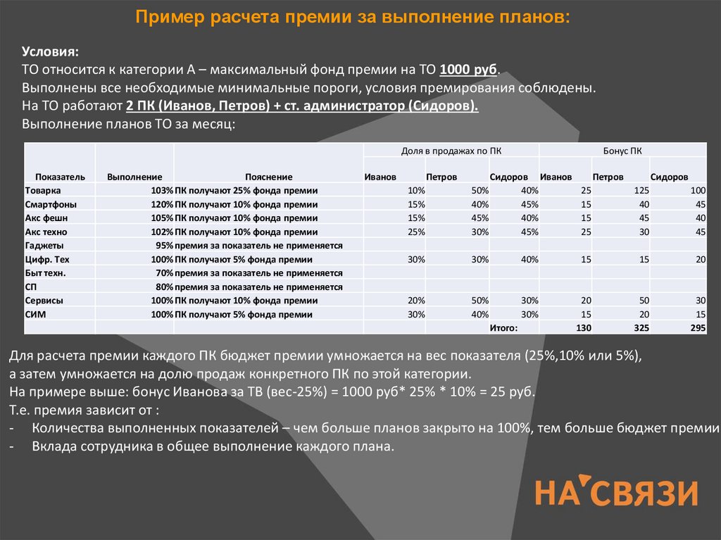 Чем больше планов выполнено на 100% и выше , тем больше бонус