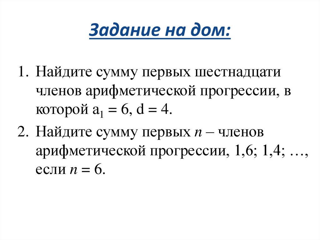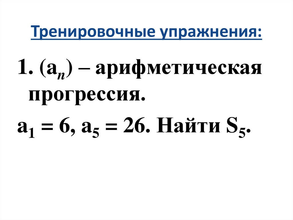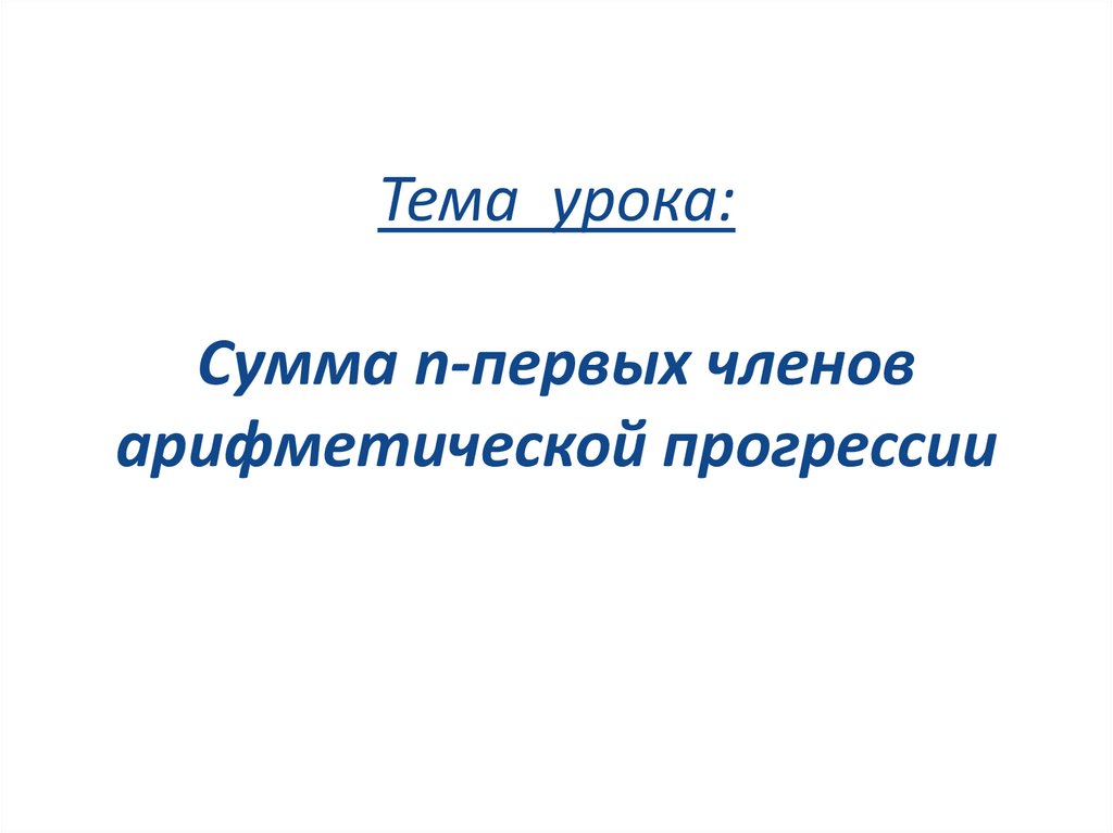 1. Тема урока: Сумма n-первых членов арифметической прогрессии