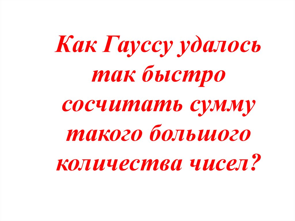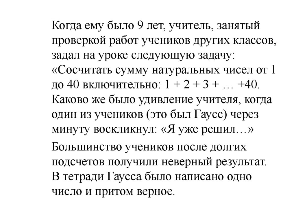 8. Как Гауссу удалось так быстро сосчитать сумму такого большого количества чисел?