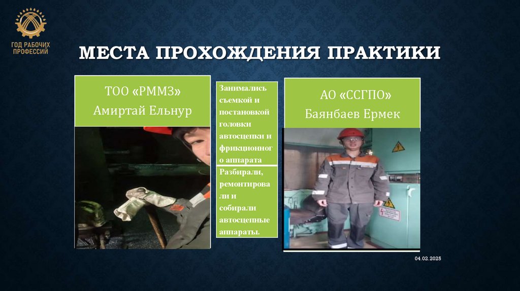 МЕСТА ПРОХОЖДЕНИЯ ПРАКТИКИТОО «РММЗ»