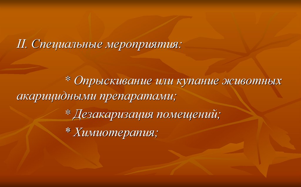 ІІ. Специальные мероприятия:* Опрыскивание или купание животных