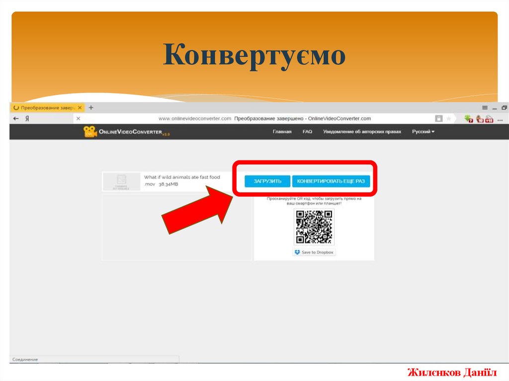 4. Конвертуємо в формат МР4 та зберігаємо його до папки 8