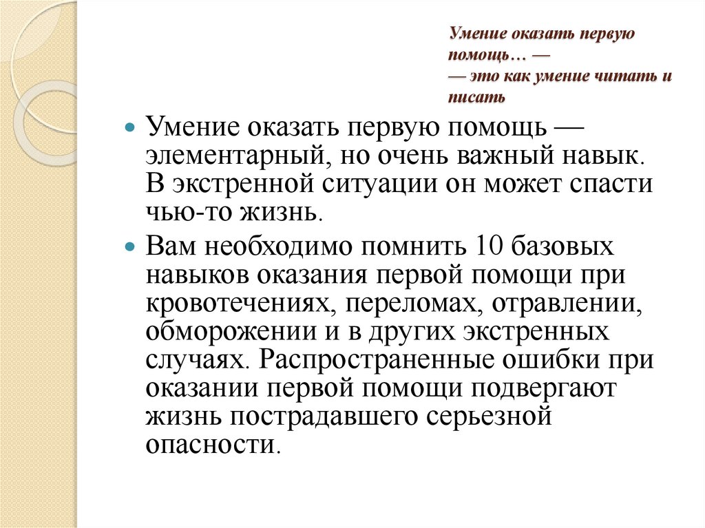 Алгоритм оказания первой помощи. 10 базовых навыков