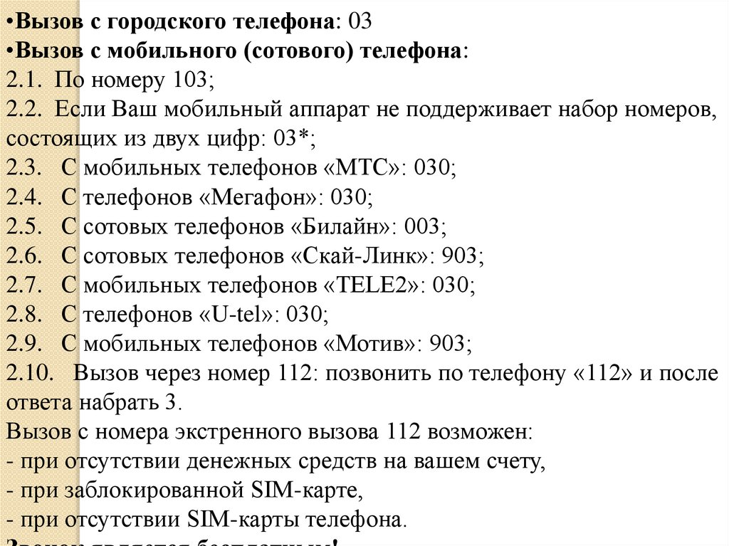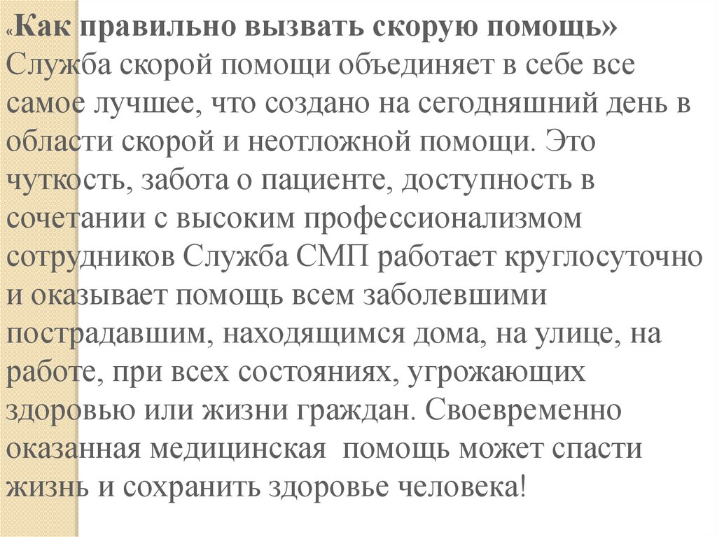 Как правильно вызвать скорую помощь»Служба скорой помощи объединяет в себе все