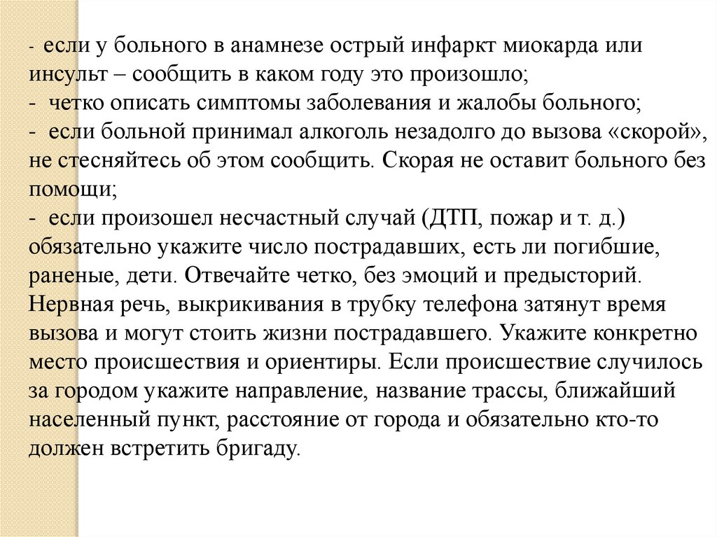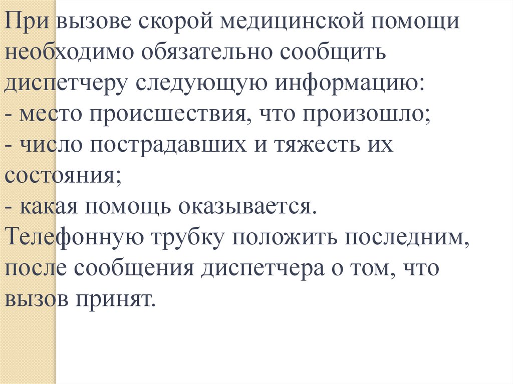 При вызове скорой медицинской помощинеобходимо обязательно сообщить