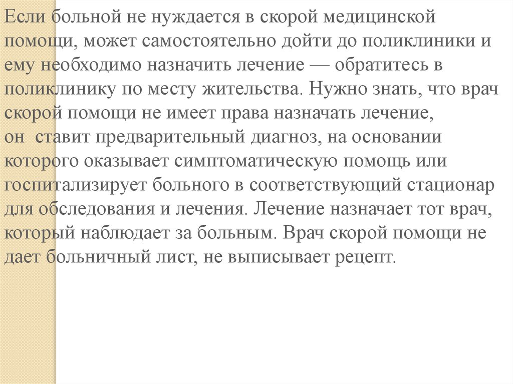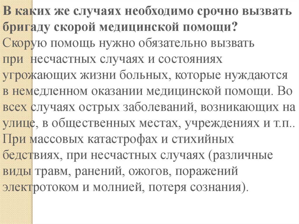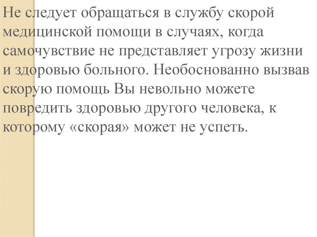 Не следует обращаться в службу скороймедицинской помощи в случаях, когда