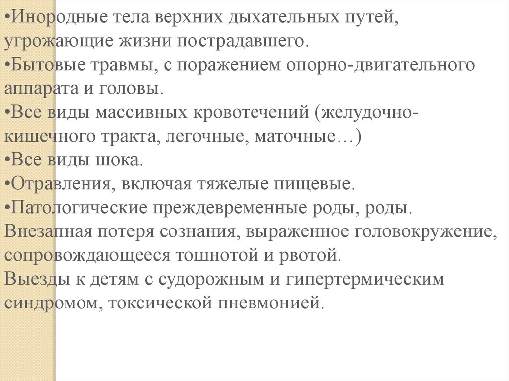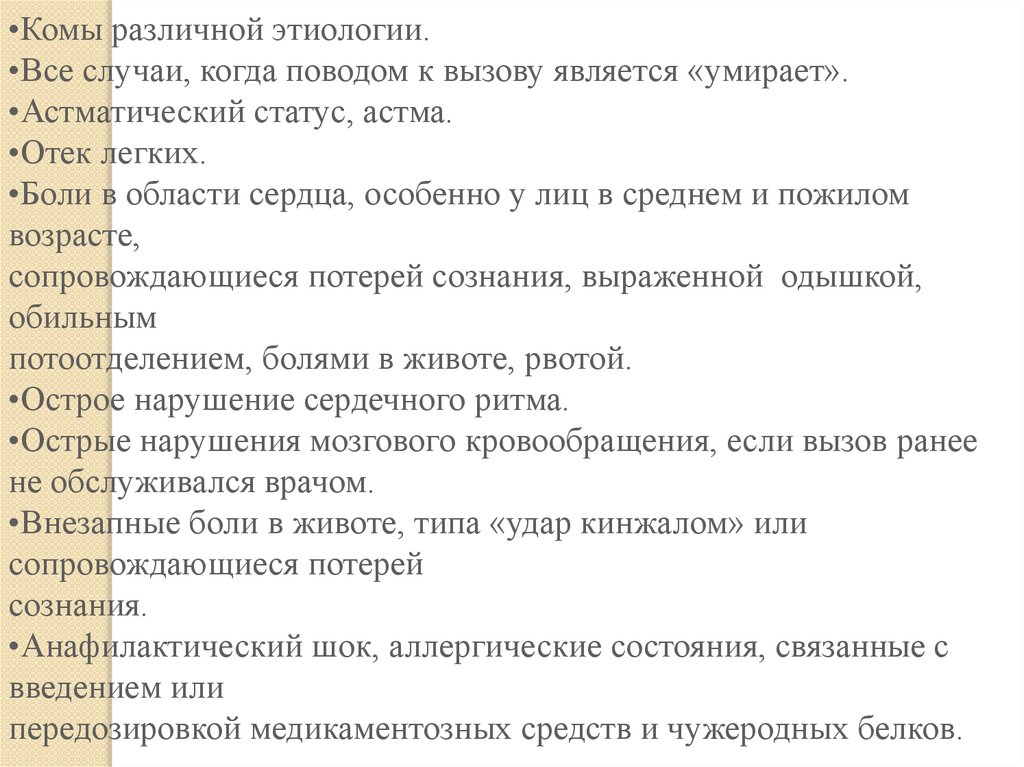 •Комы различной этиологии.•Все случаи, когда поводом к вызову является «умирает».